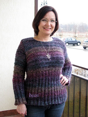 Włóczka akrylowa Elian Sissy (to już moja druga bluzeczka z tej nitki), uwielbiam ją! Kolorystyka tego melanżu bardzo , ale to bardzo mi odpowiada. Zużyłam około 33dag, a do wydziergania bluzeczki użyłam szydełek 3,5 i 4mm. SCHEMAT