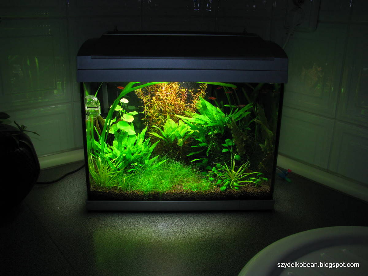 Na zdjęciu niżej jest drugie, 20 litrowe (stoi na blacie w kuchni) i jest tak małe, że rybki dobrane do niego mają wielkość 1,5cm (dorosły osobnik!).