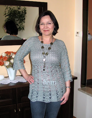 OdpowiedzUsuńZnowu śliczna bluzeczka,kolor też mi się podoba i coś podobnego kolorystycznie robię.Podziwiam tempo robótek...pozdrawiam