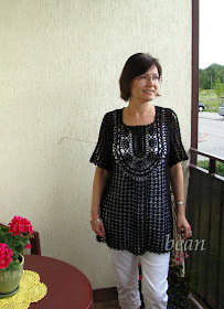 Spodobała mi się taka tunika, ale robiąc dokładnie wg schematu wyszła mi bardziej rozkloszowana dołem. W ogóle wyszła troszkę duża na mnie - mam nadzieję, że po praniu ciut się skurczy ;) tak jak wszystkie moje bawełniane wyroby :D