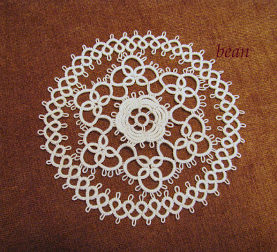 I jeszcze w temacie serwetek - przyłączyłam się do supłania frywolitkowej serwetki wg pomysłu Renulka. Zabawa jest o tyle fajna, że uczestniczki nie mają pojęcia jaki będzie efekt końcowy, bo kolejne etapy poznajemy w kolejnych postach - Renulek wymyśla wzór na bieżąco :)