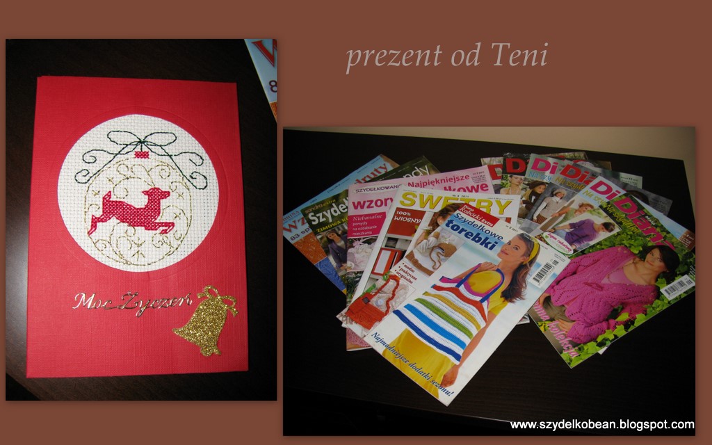 Prawda, że cudna jest ta karteczka własnoręcznie wyhaftowana przez Teresę? I ile fachowych czasopism dostałam! Oglądam, podziwiam i nie mogę nacieszyć oczu :)
