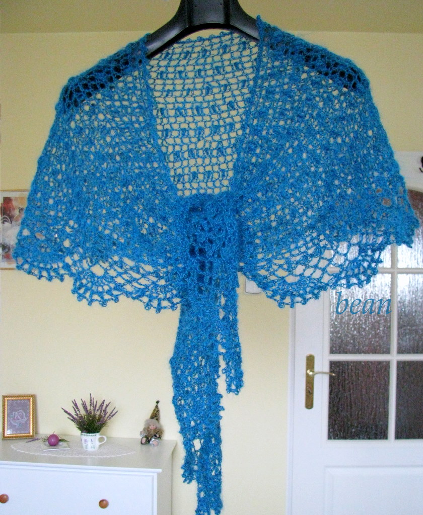 Turkusowa włóczka to Angel, zużyłam niecałe dwa motki po 25g, więc robótka jest lekka jak piórko :D