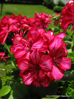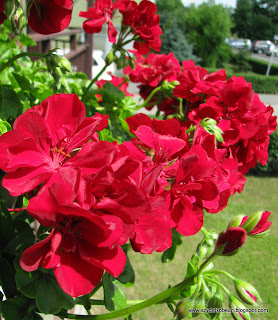 Ślicznie w niej wyglądasz, a pelargonie też lubie, chociaż u mnie raczej nie rosną, za to mam ślicznie kwitnące fukcje i begonie:0)