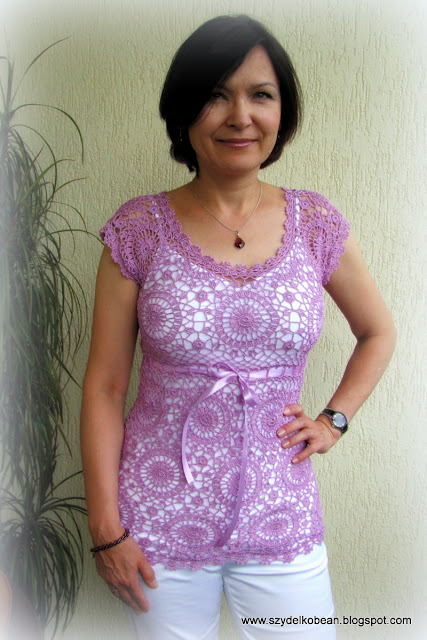 Dopisek: metody bez odrywania nici nauczyłam się z tego kursiku, zamieszczonego wcześniej przez iwi na forum Maranciaki, a elementy konkretnie do tego topu (a wcześniej sukienki) znalazłam na Osince w albumie jednej z forumowiczek.