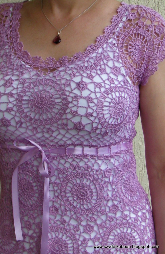 Wzorek miałam dobrze opanowany, bo robiłam nim już wcześniej sukienkę. Teraz użyłam znacznie cieńszej nitki i taki koronkowy efekt bardzo mi się podoba.