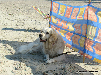 Uwielbiam te okolice i właśnie we wrześniu, bez tłumów. Czyżby ten śliczny piesek nie lubił się kąpać, że się tak chowa za parawanem? Życzę dobrego wypoczynku.