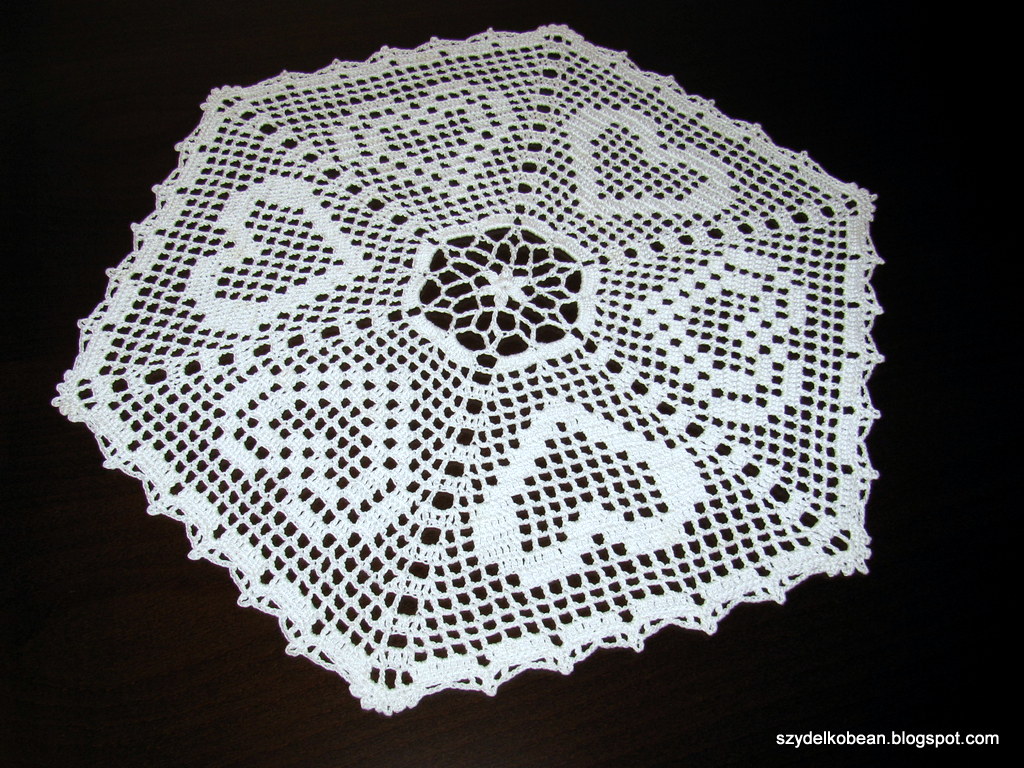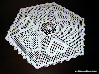 serwetki: w serduszka z Maxi (szydełkiem 1,25mm), a tę w kolorze rozbielonej pomarańczy z Doppio Ritorto 12 firmy Adriafil (szydełkiem 1,0mm) - wzory z internetu