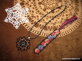 Frywolitkowa zakładka z Aidy 20 własnoręcznie barwionej, którą zrobiłam dla Bogusi w ramach podziękowania za wytłumaczenie mi jak robić serwetki na drutach :)