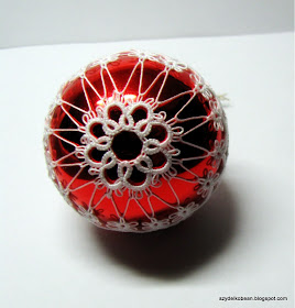 Koroneczka na swoim blogu pokazała jak stworzyć frywolitkowe ubranko na bombkę, a ponieważ nigdy bombek nie ubierałam, to postanowiłam takie gatki poczynić ;)
