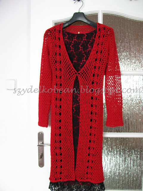 OdpowiedzUsuńWdzianko obłędne! Choć czerwieni nie trawię, to takie ażurowe wdzianko długie mi się marzy (w czerni)...