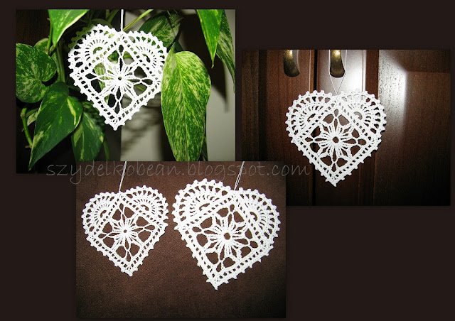 Potem na blogu Doroty zauroczyły mnie ażurowe serduszka ze śnieżynką w środku.