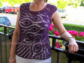 Wiskozową włóczkę kupiłam z zamiarem zrobienia letniej sukieneczki dla 10 miesięcznej Zosi, ale jej mama chciała by zamiast sukienki zrobić małej spódniczkę z falbankami. Spełniłam jej życzenie, a że włóczki jeszcze mi zostało, to do kompletu powstało bolerko :)
