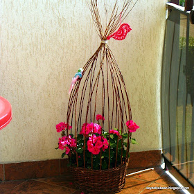 Ta gałązka to część koszyczka wiklinowego, który u mnie na balkonie w całej okazałości wygląda tak:
