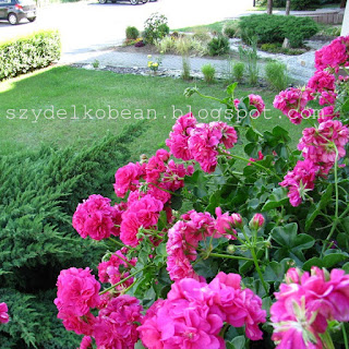 Ten cudny kubraczek jest tak delikatny i pięknie wykończony, że sweterkiem bym go nie nazwała. Zosia jest szczęściarą, że ma tak zdolną ciocię, a i Tobie Beatko musi być miło stroić małą damę. Torba na robótki - pierwsza klasa, no i pelargonie masz w ślicznym kolorze, pozdrawiam.