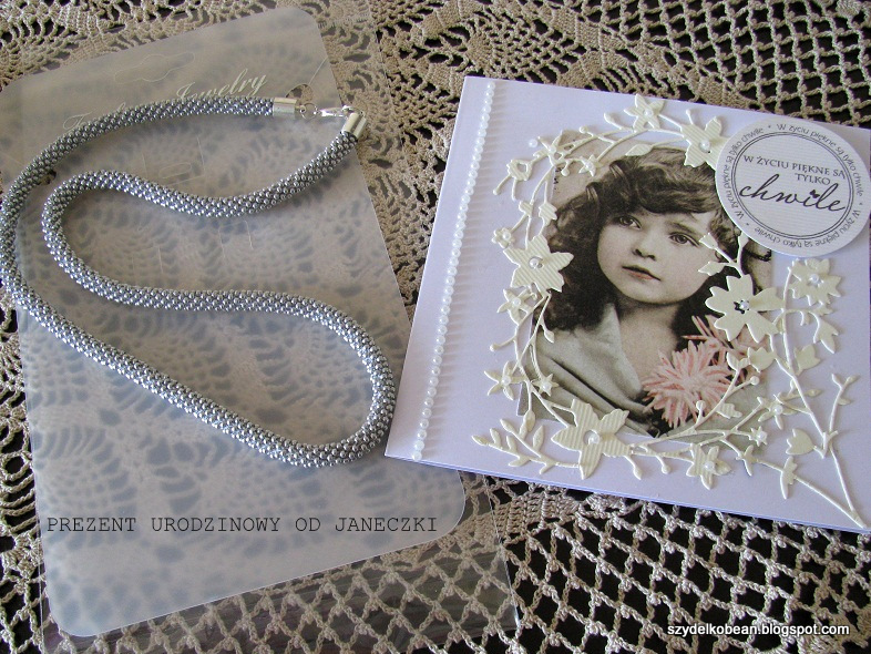 Od Janeczki otrzymałam śliczny sznur koralikowy i cudną karteczkę.